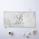 Monogramme personnalisé et cadeau de nom caractéristiques monogramme personnalisé en style de police de script classique gris et nom en style de police de serif classique gris sur arrière - plan de marbre blanc.