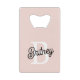 Voici notre Monogramme personnalisé moderne et Nom Pastel Pink Credit Card Bottle Opener, un accessoire élégant et élégant qui combine fonctionnalité et touche personnelle. Conçu dans un rose pastel doux et customisé de votre monogramme et de votre nom, cet ouvre-bouteille de taille carte de crédit s'intègre facilement dans votre porte-monnaie ou votre poche, ce qui le rend parfait pour une utilisation sur le pouce. Conçu à partir de matériaux de haute qualité, il offre une durabilité et une facilité d'utilisation, vous assurant ainsi d'être toujours prêt pour une boisson rafraîchissante. Idéal pour un usage personnel ou comme cadeau réfléchi, ce ouvre-bouteille ajoute une touche chic et personnalisée à toute occasion. Explorez notre collection pour plus de coordination et suivez-nous pour des mises à jour sur les nouveaux produits. Contactez-nous dès aujourd'hui pour customiser votre propre ouvre-bouteille sur mesure ou pour en savoir plus sur nos offres.