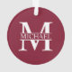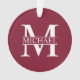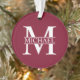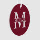 Monogramme personnalisé et cadeaux de nom avec monogramme blanc personnalisé dans le style de police serif classique avec boîte de nom au milieu du monogramme sur arrière - plan rouge bordeaux.