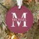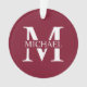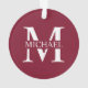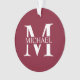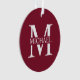 Monogramme personnalisé et cadeaux de nom avec monogramme blanc personnalisé dans le style de police serif classique avec boîte de nom au milieu du monogramme sur arrière - plan rouge bordeaux.