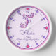 Monogramme lettre F cœurs et fleurs en rose et violet ajoutez votre propre nom horloge, actuellement lit Felicia Heureux. Bénie de joie et de bonne fortune ou vous pouvez personnaliser avec votre propre nom et signification ou message. Conception de dessin doodle mignon de la lettre F entourée de chiffres d'horloge et de cœurs. D'autres articles assortis disponibles pour cette lettre et d'autres lettres. Si vous avez besoin d'aide pour placer votre propre nom sur ce produit, veuillez me contacter. Conception unique et dessin à l'encre par Sarah Trett www.sarahtrett.com pour www.mylittleeden.com sur zazzle