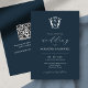 Économisez sur du papier et de l'argent avec ce faire-part de mariage monogramme avec code QR. Design simple mais élégant, cette invitation de mariage présente à la fois la typographie calligraphique avec une classique sans police en blanc sur un bleu de minuit. Une élégante crête encadre les initiales de la mariée et du marié. La carte revient à une couleur bleue assortie avec votre code QR mariage et de l'espace pour plus de détails. Toutes les couleurs sont personnalisables. Pour plus d'informations sur les invitations à un mariage pour un budget, visitez www.zazzle.com/dotellabelle