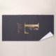 Bleu doré personnalisé élégant Floral Monogramme L Serviette de bain