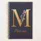 Personnalisé Gold Blue Elegant Floral Monogram M Planner *Pour cette conception, chaque lettre a sa propre liste mais vous customisez votre nom en cliquant sur "personnaliser ce modèle". Je travaille à ajouter d'autres lettres ; si la vôtre n'est pas encore listée, s'il vous plaît, envoyez-moi un message et je peux l'énumérer pour vous.