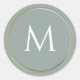 Cet ensemble de 20 petites enveloppes de monogramme rond de 1,5 po comprend un arrière - plan vert sage entouré d'une fausse bordure en or avec une initiale en monogramme blanc.