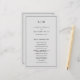 Programme de mariage simple avec un design moderne et élégant avec votre monogramme à deux lettres en haut et vos détails entourés d'une mince bordure. Tout le texte est en noir sur un arrière - plan gris clair et peut être modifié dans l'outil d'édition de conception. Le front a votre ordre de cérémonie et le dos a votre fête de mariage et message de remerciement. Un design chic et design qui conviendra à un couple minimaliste. Ces programmes de mariage bon marché sont imprimés sur des feuilles de papier pour une option économique.