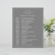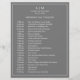 Timeline Mariage simple avec un design moderne mais élégant avec votre monogramme de deux lettres en haut et vos détails entourés d'une fine bordure. Tout le texte est en blanc sur un arrière - plan gris moyen et peut être modifié en n'importe quelle couleur en cliquant sur le bouton "personnaliser". Un design chic et design qui conviendra à un couple minimaliste.