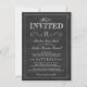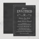 Invitations de mariage rustique en tableau noir et blanc avec des bords monographiques et arrondis facultatifs — Invitations de mariage noir et blanc en tableau noir. Monogramme fantaisie avec motif tourbillon. Élégante typographie rétro avec calligraphie en écriture vintage, swooshes, style poster à l'ancienne avec une frileuse bordure rustique. Parfait pour les mariages traditionnels, ruraux ou romantiques, mais avec une touche de style moderne et tendance pour les couples raffinés. Il suffit d'ajouter les noms des mariées et des mariées et les détails des mariages. Les modèles faciles à utiliser peuvent être modifiés pour les mariages formels ou semi-formels. Cliquez sur Customiser pour modifier le style de type, les couleurs et la taille des polices. D'autres tailles et styles de couleurs sont disponibles, de même que des ensembles de poste coordonnés, des accessoires de douche nuptiale et des produits de première nécessité pour les mariées do-it-yourself sur un budget limité.Veuillez nous contacter pour obtenir de l'aide sur la personnalisation si vous avez besoin d'espace supplémentaire pour vos détails mariages.