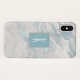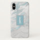 Elégant coque iPhone X réalisé dans un motif blanc, gris et turquoise à l'aspect marbré. Une zone de texte carré gris et turquoise, au milieu du coque, a un monogramme d'une seule lettre blanche. Personnalisez le monogramme d'une lettre, pour vous-même ou comme une excellente idée cadeau.