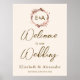 Un simple chic feutre d'or rose floral monogramme de pêche légère signe d'accueil pour mariage. Facile à personnaliser avec vos détails. Signe d'accueil boho moderne éditable, personnalisable, calligraphie police manuscrite, simple, élégant.