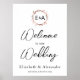 Un simple monogramme chic rose doré feuille d'or signe de bienvenue pour mariage. Facile à personnaliser avec vos détails. Signe d'accueil boho moderne éditable, personnalisable, calligraphie police manuscrite, simple, élégant.
