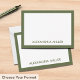 Le design de la carte à billet plat à double face intemporelle présente un design monogramme vert olive et blanc avec nom dans les tiers inférieurs, encadré en olive. Une typographie élégante qui peut être personnalisée avec votre nom ou texte personnalisé. L'espace pour votre note manuscrite est inclus à l'avant et à l'arrière. Cette carte est disponible en format papier et numérique, vous permettant de choisir l'option qui vous convient.
