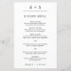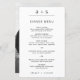 Menu mariage photo moderne avec un design simple avec votre monogramme, noms et date dans une police sans serif noir, sur un arrière - plan blanc. L'arrière a votre photo préférée. Ces menus mariage peu chers sont imprimés sur des feuilles de papier pour une option économique et sont parfaits pour un mariage de style minimaliste.