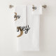 L'élégant Monogramme moderne Nom Black Gold Script Ensemble de serviettes de bain combine luxe et personnalisation dans votre salle de bain. Cet ensemble présente un design noir élégant orné d'un script doré sophistiqué, où vous pouvez ajouter un monogramme personnalisé et un nom pour une touche unique. Les serviettes sont à la fois absorbantes et douces, faites de coton moelleux et de haute qualité, offrant une expérience confortable et élégante. Cet ensemble comprend des serviettes de bain et des serviettes de bain, parfait pour ajouter une touche d'élégance et de personnalisation à votre décor de salle de bain.