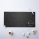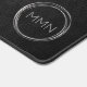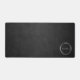 Un tapis de bureau moderne au design minimaliste avec des anneaux en cuir noir et argent imitation pour customiser avec vos initiales ou vous avez la possibilité de les remplacer par votre propre logo.