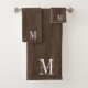 Écriture personnalisée monogramme faux linge effet brun foncé serviette de bain monogrammed ensemble avec une police de script sur un arrière - plan faux linge. Une élégance simple. Rafraîchissez votre décor de salle de bain avec un style typographique minimaliste.