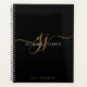 Élégant Script Gold Monogram Script Initiales blanc Nom sur noir. Un simple et élégant planificateur de style minimaliste pour la maison ou le bureau. Planificateur 2025. Personnaliser pour n'importe quelle année. Style minimaliste tendance.