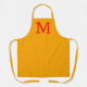 L'tablier du chef aux tons dorés contemporains est orné d'une lettre orange/rouge audacieuse sur le devant.