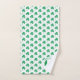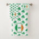 Le kit de serviettes de bain SHAMROCK moderne, conçu avec une motif toute shamrock. Le drapeau irlandais est placé dans un cercle dans le coin de chaque serviette. Il y a du texte courbe PERSONNALISABLE en haut et en bas du cercle, plus un MONOGRAM qui est également personnalisable. Ce texte peut être remplacé par un message de bienvenue et/ou personnalisé avec votre nom, ou le nom de votre établissement. Idéal pour vos invités ou clients le jour de la Saint Patrick.