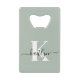 Ce simple et élégant ouvre-bouteille vert sauge avec votre prénom dans une police de script tendance en noir et votre première initiale dans une police casquette moderne en blanc est parfait pour vous. C'est design, tendance et pourtant très classique. Prenez un couple pour votre cuisine et bar.