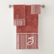 Un design motif moderne, chic et élégant monogrammé pour rehausser votre style de décoration personnelle. Changez le monogramme pour personnaliser ce jeu pour vous-même. Ces serviettes élégantes feraient aussi un merveilleux cadeau pour les nouveaux propriétaires ou les jeunes mariés! Monogram Red Boho Motif et White Stripes Serviettes de bain ensemble.
