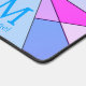 Monogramme Personnalisez avec votre initiale et votre nom personnalisés. Tapis de bureau cool unique pour bureau, chambre, travail, grotte pour homme, atelier, salle de jeux.. Lavande bleu turquoise violet rétro Mosaic Triangle Motif. Triangles géométriques de différentes nuances cool avec lignes rayées noires.