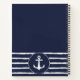 Créez un carnet nautique bleu marine et blanc personnalisé pour des idées et des plans avec la conception stylisée de la typographie, de l'ancre et des rayures. Tapez votre nom en utilisant le modèle pour créer un cadeau unique pour vos proches. Les rayures ont un aspect dessiné à la main.