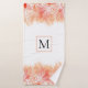 Jeu de serviettes de bain marine monogramme de couleur marine de récif de corail moderne. La serviette de bain comporte une bordure de barrière de corail blanc sur l'aquarelle de corail vivant et votre monogramme dans un cadre avec contour placé au centre. La serviette à main présente un motif du même récif de corail et le linge est recouvert d'un éclaboussure d'aquarelle de corail.