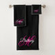 Un monogramme girly personnalisé avec un script de calligraphie sophistiqué qui s'associe en rose et blanc chaud contre un arrière - plan noir de couleur solide. Créez votre propre joli ensemble de serviettes de bain pour sa chambre dortoir. Customisez le style de police ou avec des couleurs pour correspondre à l'ombre de rose préférée de votre fille. Il se peut que l'épanouissement fantaisiste qui fait partie du monogramme doive être recentré pour votre premier emploi. Un cadeau de retour à l'école pour votre fille qui part à l'université.