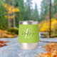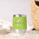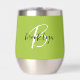 Ce tondeuse à vin thermique personnalisée est doté d'un monogramme et d'un prénom en écriture moderne noir et blanc sur un arrière - plan tendance vert citron.