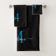 Monogramme bleu océan noir moderne Nom du script Ensemble de serviettes de bain