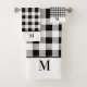 Ensemble de serviettes de bain à Buffalo noir et blanc Monogramme | Avec un modèle facile à personnaliser. Ces serviettes sont de grands cadeaux pour les hommes femmes et vous aussi, bien sûr. Contactez-nous pour vous aider à concevoir quelque chose de nouveau ou à ajouter ce motif à d'autres produits. 1