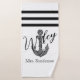 Nautique Monogrammé Noir et blanc Ancre nautique Plage mariage lune de miel Beach Serviette. Script de calligraphie moderne Wifey sur une Ancre et personnalisée avec Mme. ...name. : Serviette de plage Ancre nautique.. Élégante serviette Wifey Nautique personnalisée La serviette "Wife" dispose d'une serviette Hubby Correspondante que vous pouvez acheter pour correspondre à cette serviette. C'est un complément idéal à toute fête de destination mariage, pour les jeunes mariés ou les vacances en lune de miel. Collection de Mariages correspondant.