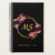 Un arrière - plan noir chic. Décoré d'un cadre géométrique en faux or et de fleurs, fleurs, fleurs, fleurs de couleur rose bordeaux et bordeaux. Personnalisez et ajoutez vos lettres monogrammes, vos initiales et un texte, titre. Parfait pour l'école, le travail ou l'organisation de votre vie personnelle/familiale.