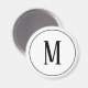 Un aimant rond avec un monogramme noir sur un arrière - plan blanc. Customisez l'aimant avec vos initiales ou initiales, couleurs, entre autres options.