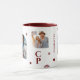 Monogram Name 3 Photo Collage Moderne et tendance Mug de café propose un montage photo de trois de vos photos préférées avec votre nom personnalisé et monogramme dans élégant script bordeaux. Personnalisez en modifiant le texte dans les zones de texte fournies. Parfait pour l'anniversaire, Noël, Fête des Mères, Fête des pères, meilleurs amis et plus encore. CONSEIL PHOTO : centrez vos photos avant de les télécharger sur Zazzle. Conçu par ©Evco Studio www.zazzle.com/store/evcostudio