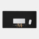 Un élégant tapis de bureau monogrammed de style moderne et tendance avec une initiale serif or et un nom de famille de script blanc.