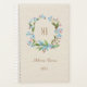 Super mignonne vintage - me-pas-couronne, fleurs bleues, feuilles verts, bourgeons roses. monogramme et nom personnalisés, police manuscrite tendance. Joli et beau cadeau personnalisé. L'arrière - plan de lin beige clair crée un joli look rustique.