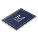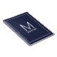 Design minimaliste moderne avec monogramme personnalisé et nom en blanc moderne sans serif style de police sur arrière - plan bleu marine.