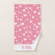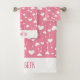 Un ensemble de serviettes de bain rose et blanc à cœurs adorables. L'ensemble comprend une serviette de bain, une serviette de toilette et un gant de toilette. Personnalisez la serviette de toilette et la serviette de bain avec un monogramme. Parfait pour la salle de bain d'une fille.