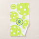 Monogramme Pickleball Sweat Towel imprimé sur mesure avec 1 ou 2 initiales dans une police moderne amusante et funky avec un simple arrière - plan jaune et blanc de pickleball fait un cadeau parfait, la faveur de la fête, ou comme équipement d'équipe correspondant. Utilisez les options de personnalisation de Zazzle pour créer une serviette en toute couleur ou design avec les éléments d'illustration du pickleball et les options de police avec texte et libellé personnalisés.