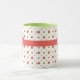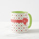 Un café Mug très chic à personnaliser avec un Monogramme ou des Initiales. Le motif de Pois rouges, verts et jaunes sur un Arrière - plan blanc est de la collection Posh & Painterly 'Rangoli'.