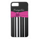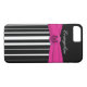 Monogramme moderne rayures noir et blanc motif iPhone 7 coque avec un ruban et bouton IMPRIMÉ rose chaud REGARDER broche. Envoyez un courriel à niteowlstudio@gmail.com si vous avez besoin d'aide pour customiser ce coque ou si vous avez des demandes. ****VEUILLEZ vous assurer que votre texte est là où vous le voulez AVANT de commander. Tout va comme il apparaît sur votre moniteur.