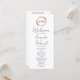 Facile à personnaliser avec vos détails. Un simple programme de mariage chic en rose en feuille d'or en couronne de monogramme. Programme de mariage boho moderne éditable, personnalisable, calligraphie police manuscrite, simple, élégant.