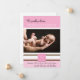 Ce précieux design de faire-part bébé est une façon merveilleuse de célébrer votre nouvelle arrivée. Ce design a un arrière - plan rose clair bloqué avec des rayures blanches et brunes. Dans le centre est un endroit pour votre photo personnalisée de votre fille. En haut, il dit : Nous sommes fiers d'accueillir et le nom de votre bébé. Sous la photo il y a un endroit pour son premier monogramme initial. En bas, il y a une place pour les statistiques de naissance de votre bébé, et les noms des parents.
