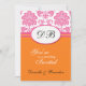 Chic et tendance, entièrement personnalisable et personnalisé faire-part de mariage monogramme rose et orange damassé. Laissez votre style briller dans ces invitations. Les correspondances sauvegardent les cartes de date et les magnets sont disponibles dans ce magasin.
