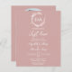 Un simple faire-part de mariage rose monogramme chic floral faux feuille. Facile à personnaliser avec vos détails. Boho moderne éditable, Arch Photo faire-part de mariage, personnalisable, calligraphie police manuscrite, simple, élégant.