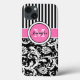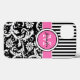 Des rayures modernes monogrammes rose, noir et blanc avec Coque damassé-coque iphone.
