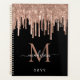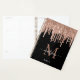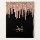 Élégant Monogramme rose Parties scintillant de séchage or brossé métal goutte-à-goutte bordure étincelante noir blanc Script Nom Planificateur