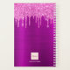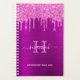 Un arrière - plan élégant, féminin et violet foncé avec des gouttes de parties scintillant rose chaud, gouttes, gouttes. Personnalisez et ajoutez votre nom, une lettre monogramme et un titre. Un planificateur pour l'organisation de clients d'affaires, de rendez-vous, de listes d'activités ou de votre vie quotidienne. Le nom est écrit avec un grand script à la main tendance avec des swashes. Pour que les swashes ne suppriment que le nom de l'échantillon, laissez les espaces ou émoticônes devant et après le nom. Lettres rose pâle et violette.